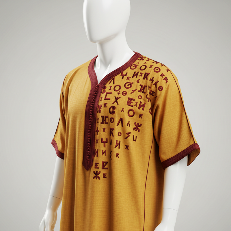 طونيكة رجالية زرقاء مطرزة بحروف تيفيناغ الأمازيغية ♓️